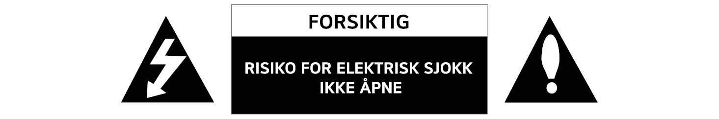 FORSIKTIG: HVIS DU FJERNER DEKSLET (INKLUDERT BAKSIDEN), KAN DU FÅ ELEKTRISK STØT. INGEN AV DELENE I DENNE ENHETEN KAN REPARERES AV BRUKEREN. SERVICE MÅ KUN UTFØRES AV KVALIFISERT PERSONELL.