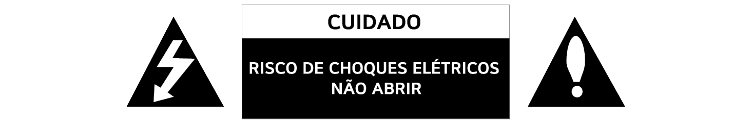 CUIDADO: PARA REDUZIR O RISCO DE CHOQUES ELÉTRICOS, NÃO REMOVA A TAMPA (NEM PARTE TRASEIRA) A MANUTENÇÃO DAS PEÇAS INTERNAS DO APARELHO DEVE SER REALIZADA POR UM TÉCNICO QUALIFICADO E NÃO PELO UTILIZADOR DO APARELHO.