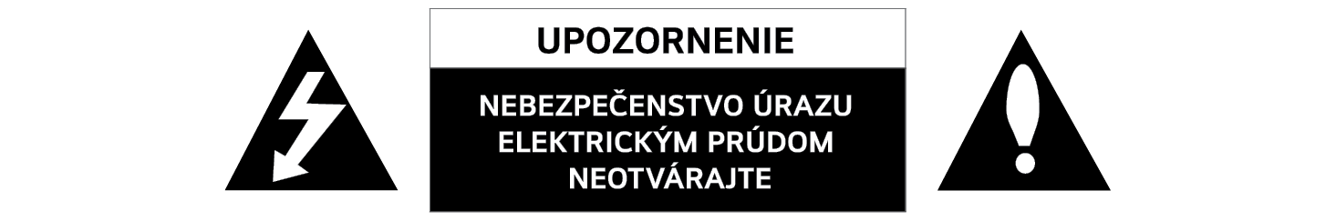 UPOZORNENIE: Z DÔVODU RIZIKA ÚRAZU ELEKTRICKÝM PRÚDOM NEOTVÁRAJTE KRYT (ANI ZADNÚ ČASŤ). VNÚTRI NIE SÚ ŽIADNE POUŽÍVATEĽOM OPRAVITEĽNÉ SÚČIASTKY. OPRAVU ZARIADENIA PRENECHAJTE KVALIFIKOVANÉMU ODBORNÍKOVI.