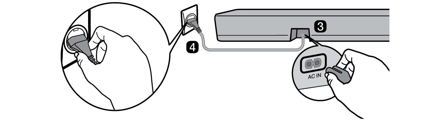 - d Anslut strömkabeln som är ansluten till din soundbar till ett eluttag.