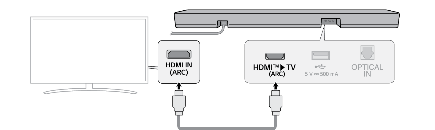 - a Usando il cavo HDMI, collegare il terminale HDMI™ d TV (ARC) sul lato posteriore del prodotto al terminale HDMI IN (ARC) del televisore, come illustrato nella figura.