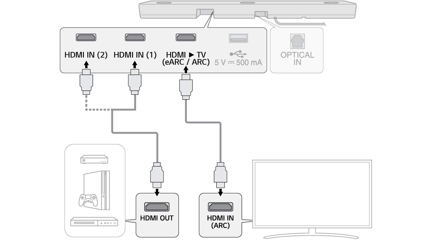 Csatlakoztassa a tévét és a külső eszközt (játékkonzolt, DVD-lejátszót stb.) HDMI kábellel, és élvezze a mély és gazdag hangot.