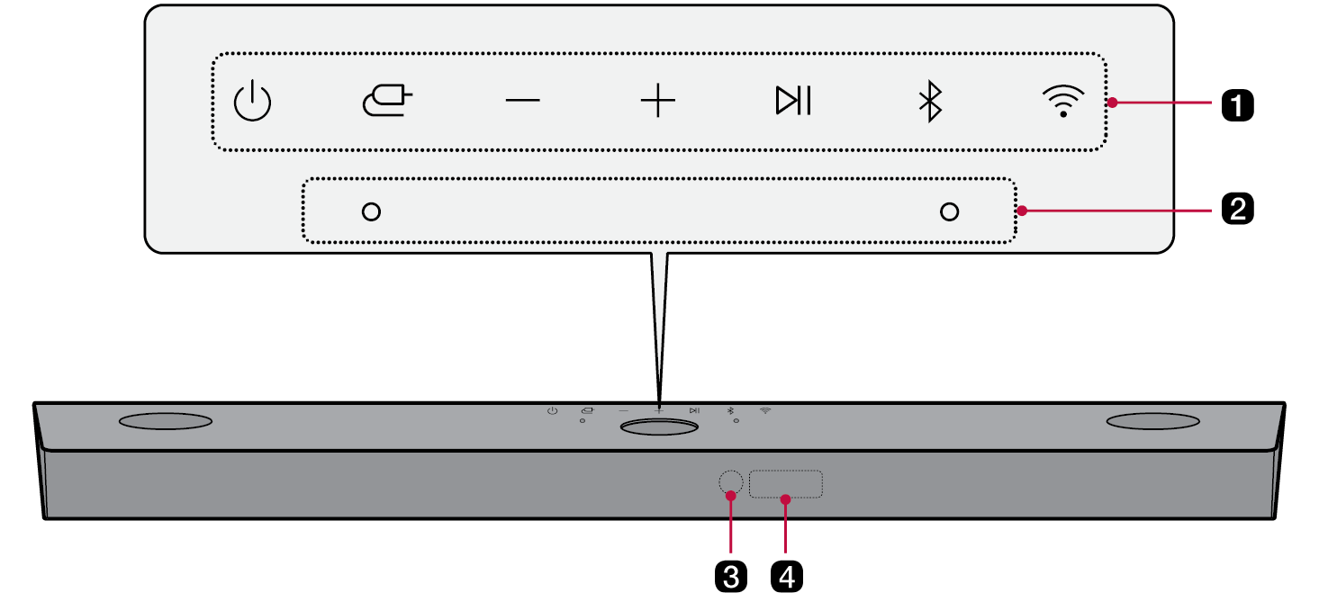 Beépített mikrofon Ez akkor használható, amikor az AI szobakalibrálást végez az LG Sound Bar alkalmazáson. |