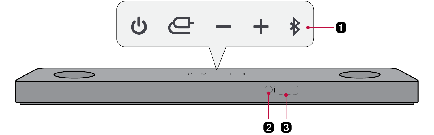 音量 音の大きさを調整します。 Bluetoothペアリング スマートフォンなどのBluetoothデバイスと本製品を3分間ペアリングできます。([33ページの「Bluetoothで接続する」を参照。) LG製テレビと本製品を3分間ペアリングできます。([27ページの「LG Sound Sync(ワイヤレス)との接続」を参照。) |