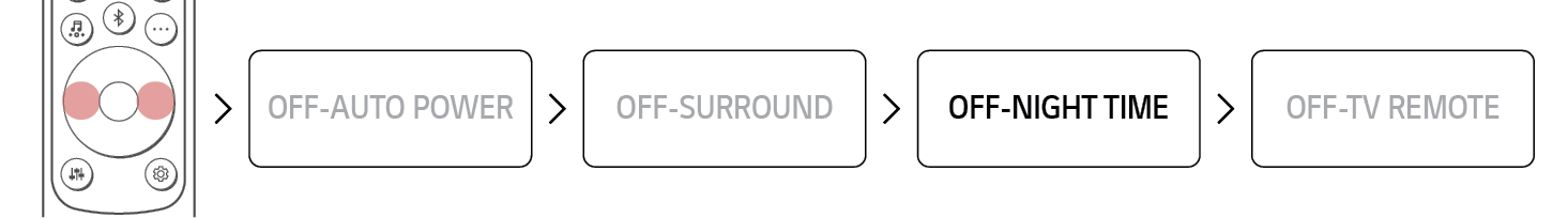Indstillinger Det giver dig mulighed for at justere produktets indstillinger: AUTO POWER, SURROUND, NIGHT TIME, TV REMOTE. Tryk på Indstillings