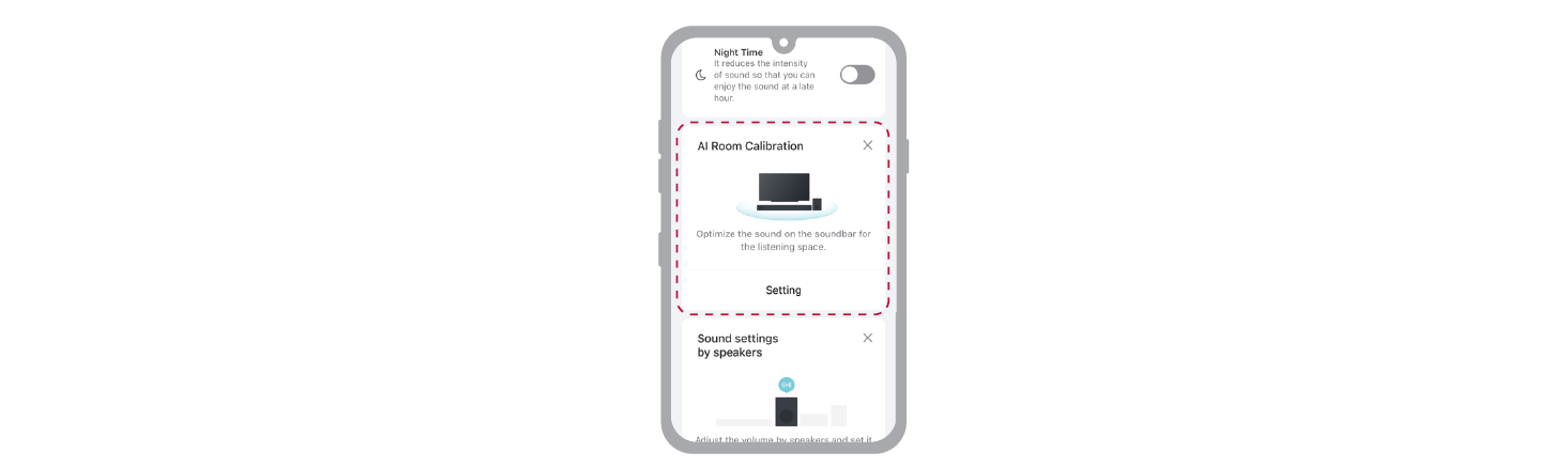 Mit dieser Technik ist es möglich, den vom Produkt ausgegebenen Klang zu analysieren und die Audio-Einstellungen individuell einzustellen. Beachten Sie bitte, dass nach Starten der Funktion AI Room Calibration das Produkt lauter klingt als erwartet.