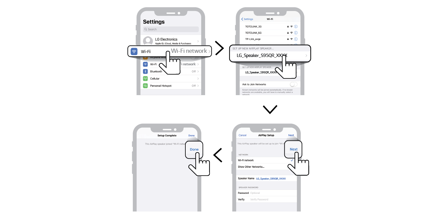 - c Selezionare “LG_Speaker_S95QR_XXXX” in CONFIGURA NUOVO ALTOPARLANTE AIRPLAY.