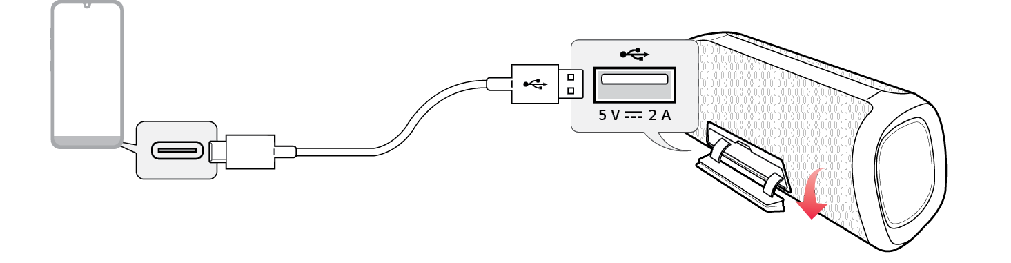 (5V 0 2 A) باستخدام كابل USB نوع (كابل C إلى A، يتم توفيره). يبدأ شحن الهاتف الذكي.