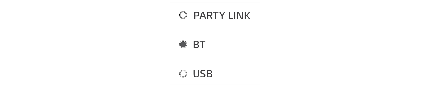 - Główny głośnik: Diody LED Party Link i BT zaświecą się i z głośnika emitowany będzie dźwięk.