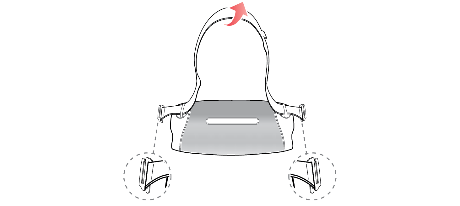 1. d При закрепени кукички в двата края на каишката, издърпайте средната част на каишката докрай нагоре.