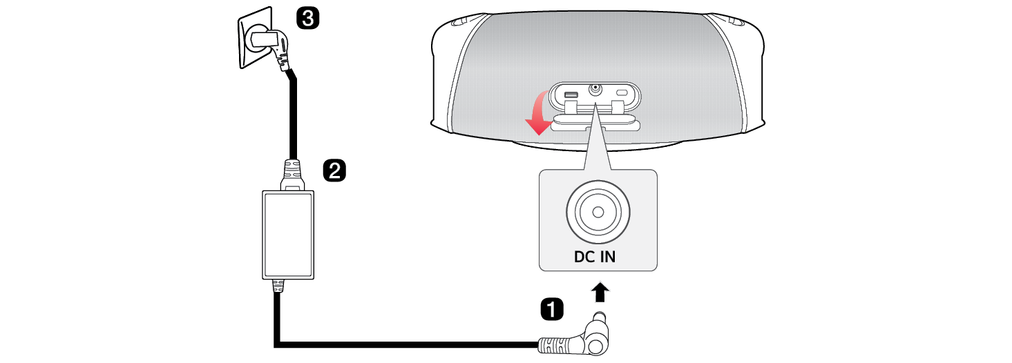 - a Отворете задния капак и включете променливотоковия адаптер в гнездото DC IN.