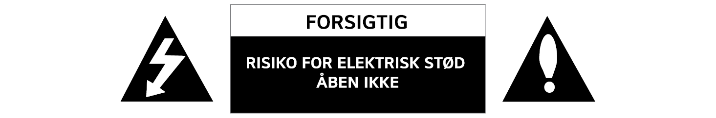 FORSIGTIG: MED HENBLIK PÅ AT MINDSKE RISIKOEN FOR ELEKTRISK STØD MÅ DÆKSLET (ELLER BAGSIDEN) IKKE FJERNES. INDEHOLDER INGEN DELE SOM KAN SERVICERES AF BRUGEREN. OVERDRAG SERVICERING TIL KVALIFICERET SERVICEPERSONALE.
