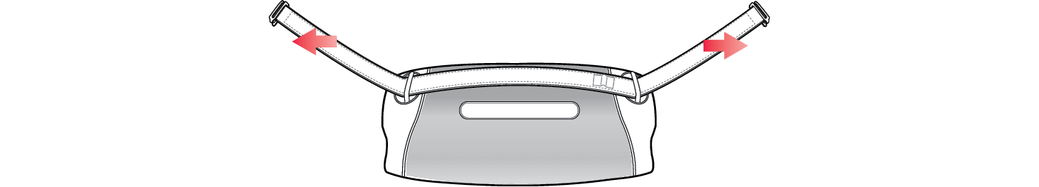 - d Po zapięciu haczyków na obu końcach paska, pociągnij środkową część paska do góry.