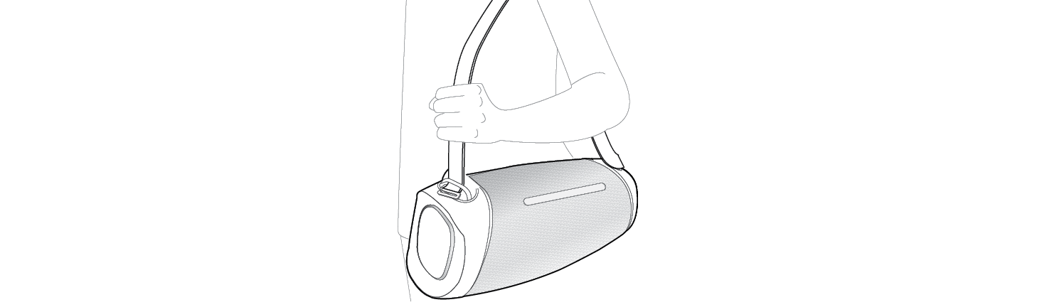 - f Po zakończeniu zapinania haczyków można głośnik można łatwo przenosić i używać.