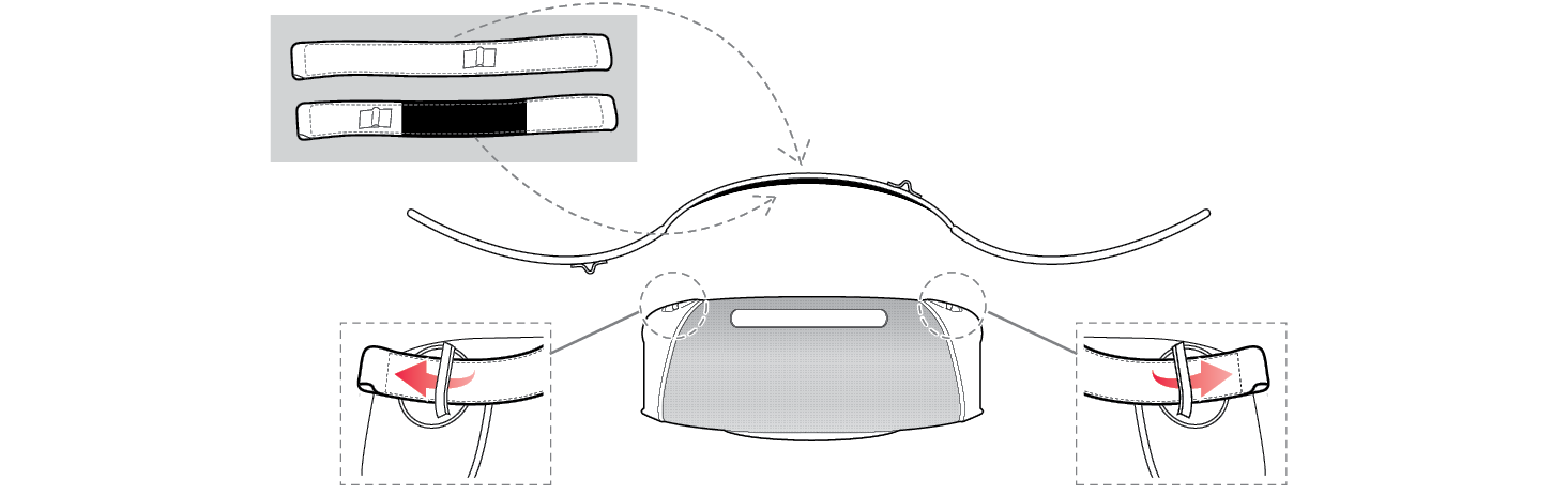 - d Com os ganchos em ambas as extremidades da alça apertadas, puxe a parte do meio da alça ao máximo para cima.