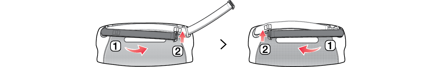 - a Vyberte háčik pripevnený k dodanému popruhu v smere znázornenom na obrázku.
