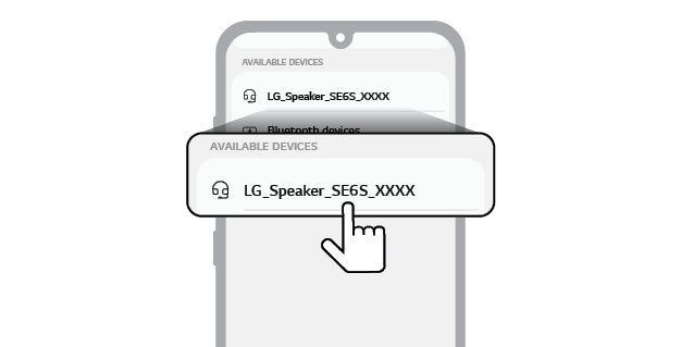 Tænd) - e Du vil se en liste over enheder, der kan tilsluttes på din smartphone. Find og tryk på “LG_Speaker_SE6S_XXXX” eller det navn, du har registreret i Google Home-appen.