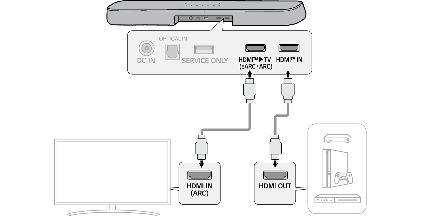 Tilkoble TV-en og ekstern enhet (spillkonsoll, DVD-spiller osv.) ved å bruke en HDMI-kabel og nyt en dyp og fyldig lyd.