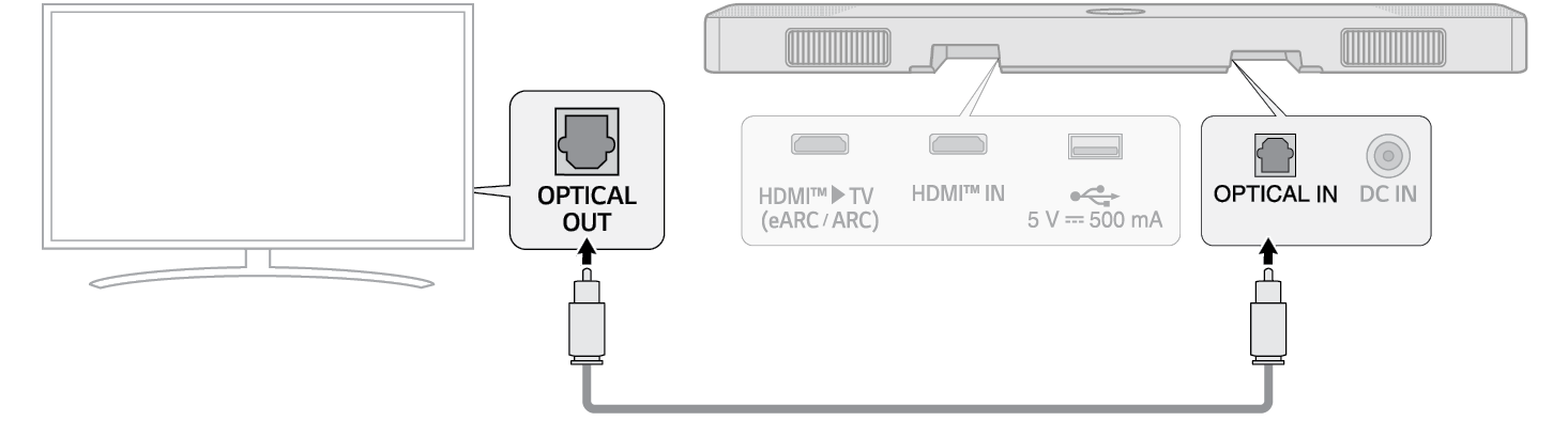 Transmita el audio de la televisión al producto conectándolo a la televisión con un cable óptico. Puede agregar diversos efectos 3D al audio original para llenar la habitación con un sonido más profundo y completo.