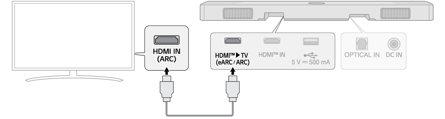 - a Utilice el cable HDMI para conectar el terminal HDMI™ d TV (eARC / ARC) de la parte trasera del producto al terminal HDMI IN (ARC) de la televisión, como se muestra en la imagen.
