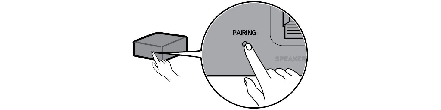 2. b Presione el botón Pairing del subwoofer inalámbrico. Verifique si el LED del subwoofer destellea en verde. Verifique si el LED de la parte trasera del subwoofer parpadea en verde. Si sigue viendo un LED rojo en el subwoofer inalámbrico, mantenga presionado el botón de la parte trasera del subwoofer de nuevo.