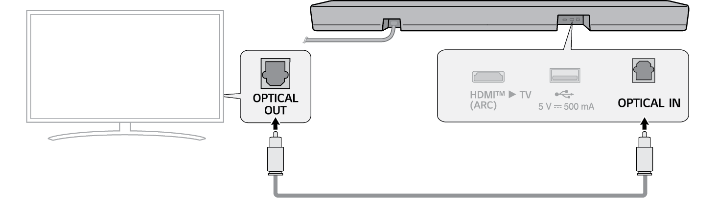 - b Bruk en optisk kabel til å koble OPTICAL IN-terminalen på baksiden av produktet Optical Digital Output (OPTICAL OUT)-terminalen som finnes på baksiden av produktet.