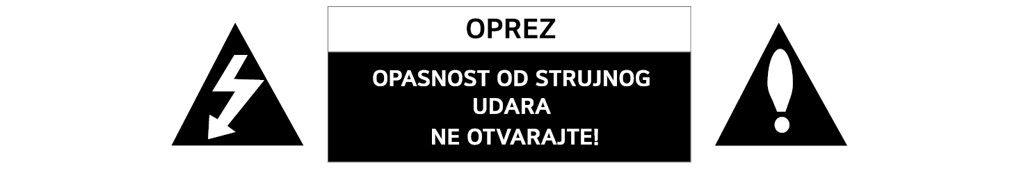 OPREZ: RADI SMANJIVANJA RIZIKA OD STRUJNOG UDARA NE UKLANJAJTE POKLOPAC (ILI STRAŽNJI POKLOPAC) UNUTRA NEMA DIJELOVA KOJE BI KORISNIK MOGAO SERVISIRATI PREPUSTITE SERVISIRANJE KVALIFICIRANIM OSOBAMA.