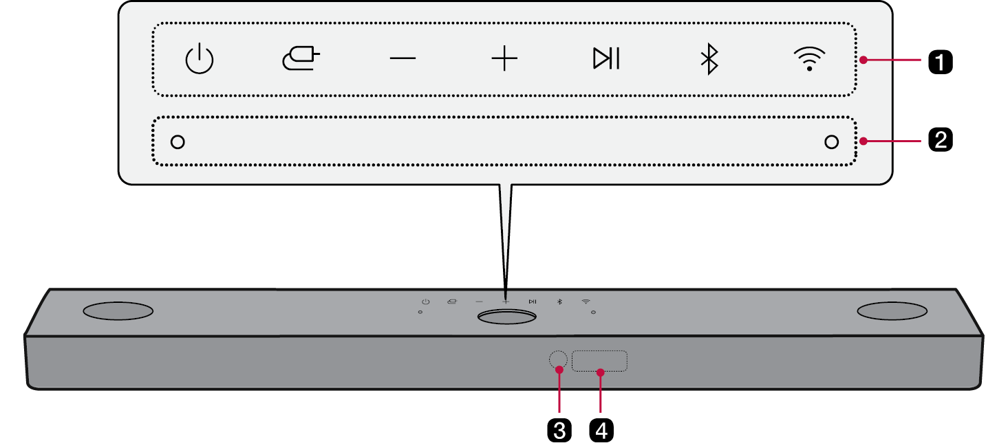 Garsumas Reguliuoja garsumo lygį. Leisti/Sustabdyti Galite pristabdyti arba leisti muziką. Bluetooth susiejimas Suteikia galimybę susieti Bluetooth įrenginį, pavyzdžiui, išmanųjį telefoną, su prietaisu trims minutėms. ([ Žr. „Prijungimas naudojant „Bluetooth“ ryšį“ puslapyje 39.) Wi-Fi Jis pereina tiesiai į Wi-Fi tinklo funkciją. |