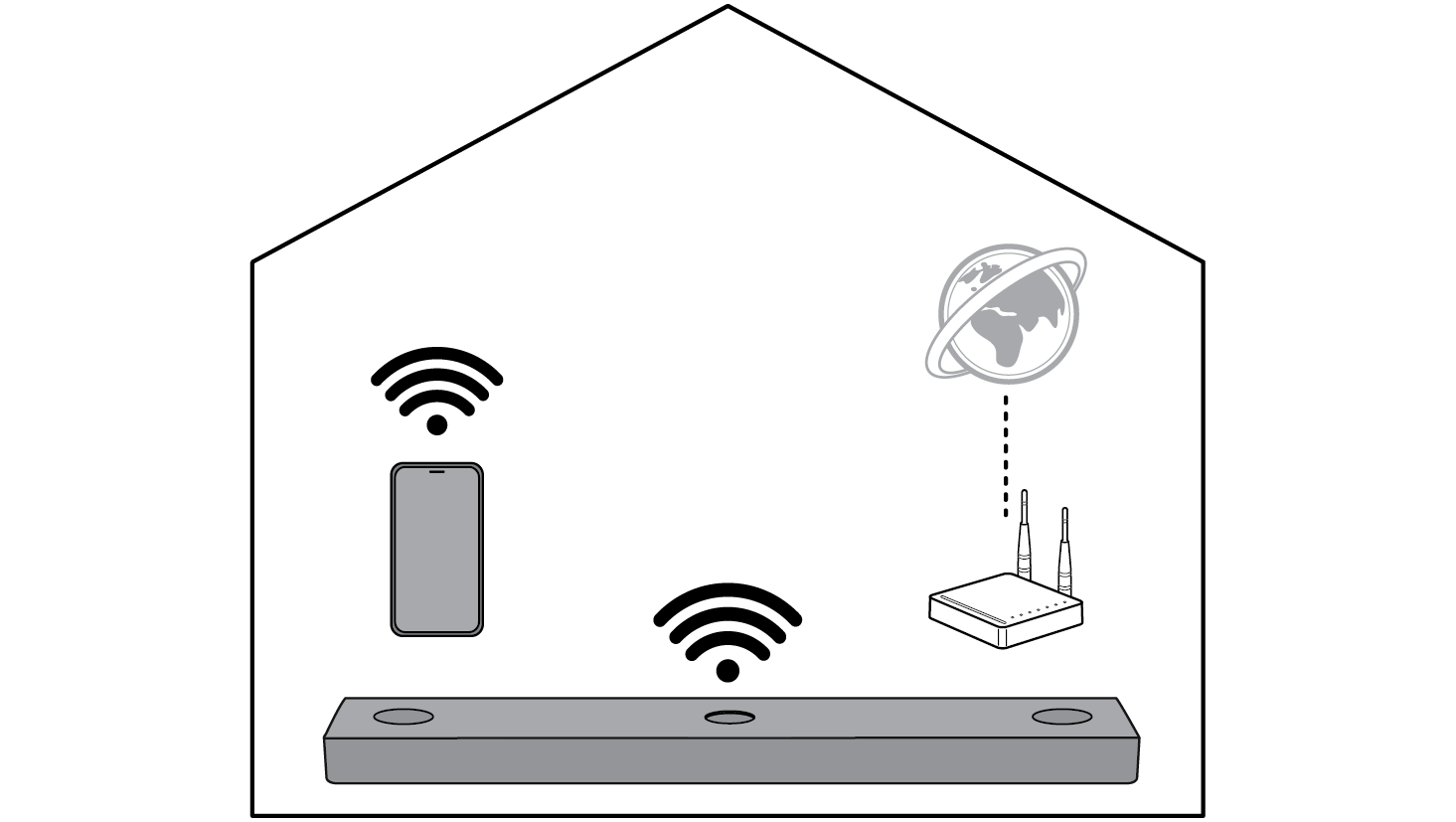 • Dacă semnalul routerului wireless este slab, există posibilitatea să nu vă puteți conecta. Mutați routerul mai aproape de bara de sunet sau repoziționați-l la distanță de obstacole.