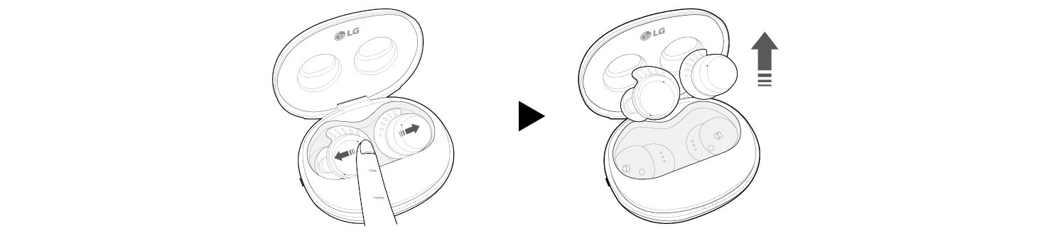 1. a W etui do ładowania odegnij wewnętrzną część słuchawek na zewnątrz i wyjmij je.