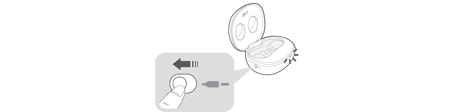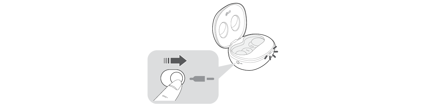 - f Po nawiązaniu połączenia między etui do ładowania a słuchawkami wskaźnik się wyłączy.