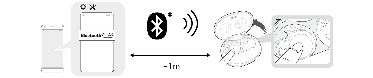 - b Otwórz pokrywę etui do ładowania z umieszczonymi w nim słuchawkami. Niebieski wskaźnik stanu akumulatora na przedniej stronie zacznie migać. Jeśli niebieski wskaźnik stanu akumulatora nie miga lub jeśli chcesz podłączyć urządzenie inne niż już podłączone, naciśnij i przytrzymaj przez 3–5 sekund płytkę dotykową lewej lub prawej słuchawki.