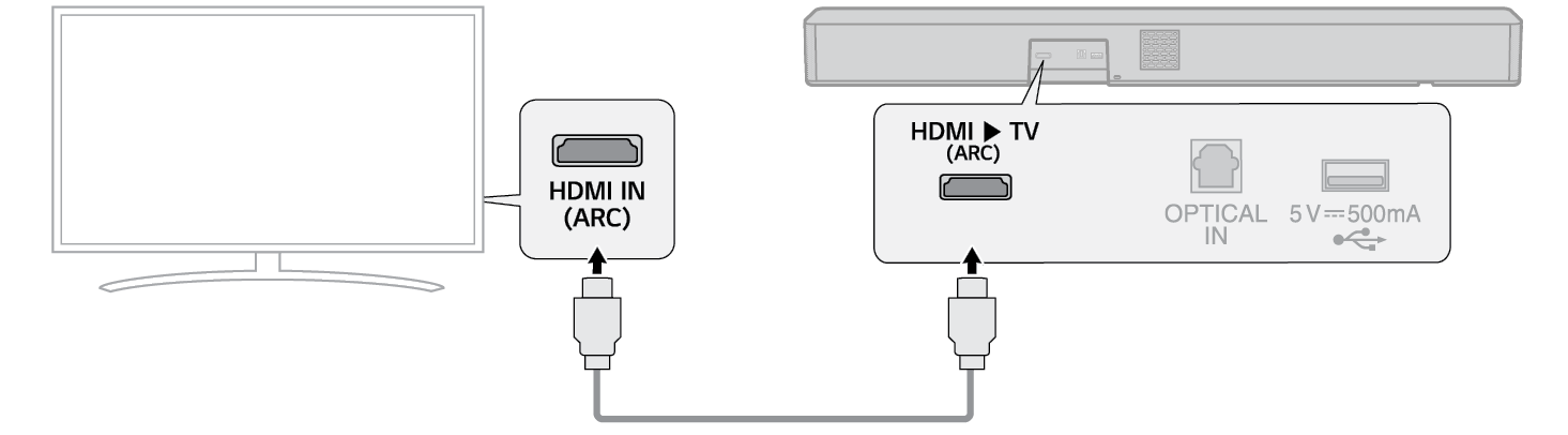 1. a Using the HDMI cable, connect the HDMIdTV (ARC) terminal on the back of the product to the HDMI IN (ARC) terminal on the TV as shown in the picture.