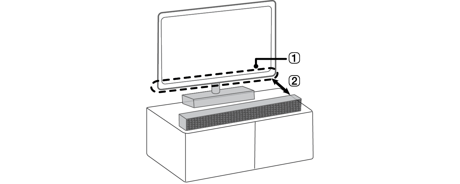 2. B If the sound bar covers the remote control receiver of the TV, please separate distance between the sound bar and TV by 10 ~ 15 cm or more.