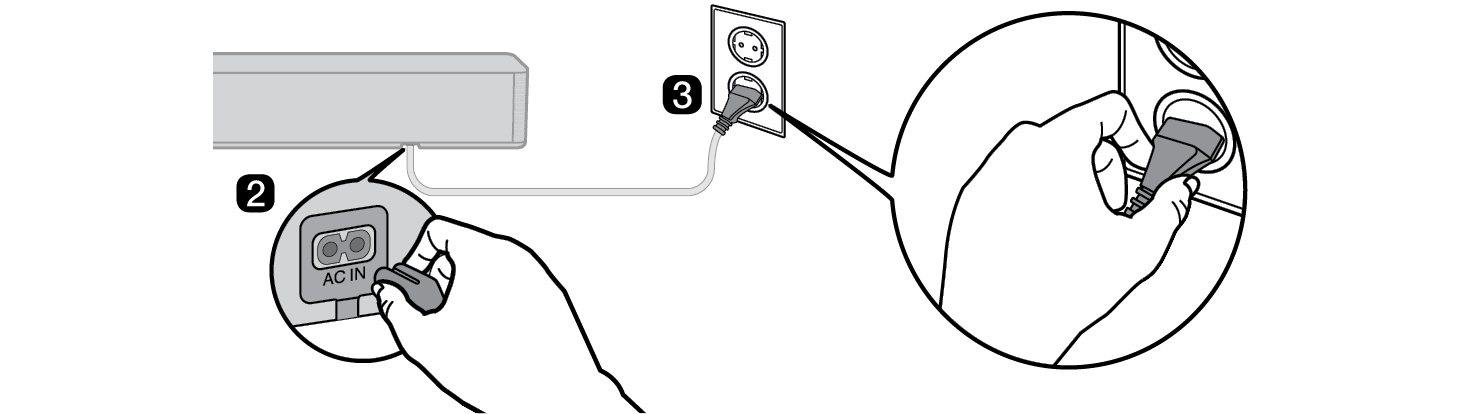 - b Plug the power cable into the sound bar.